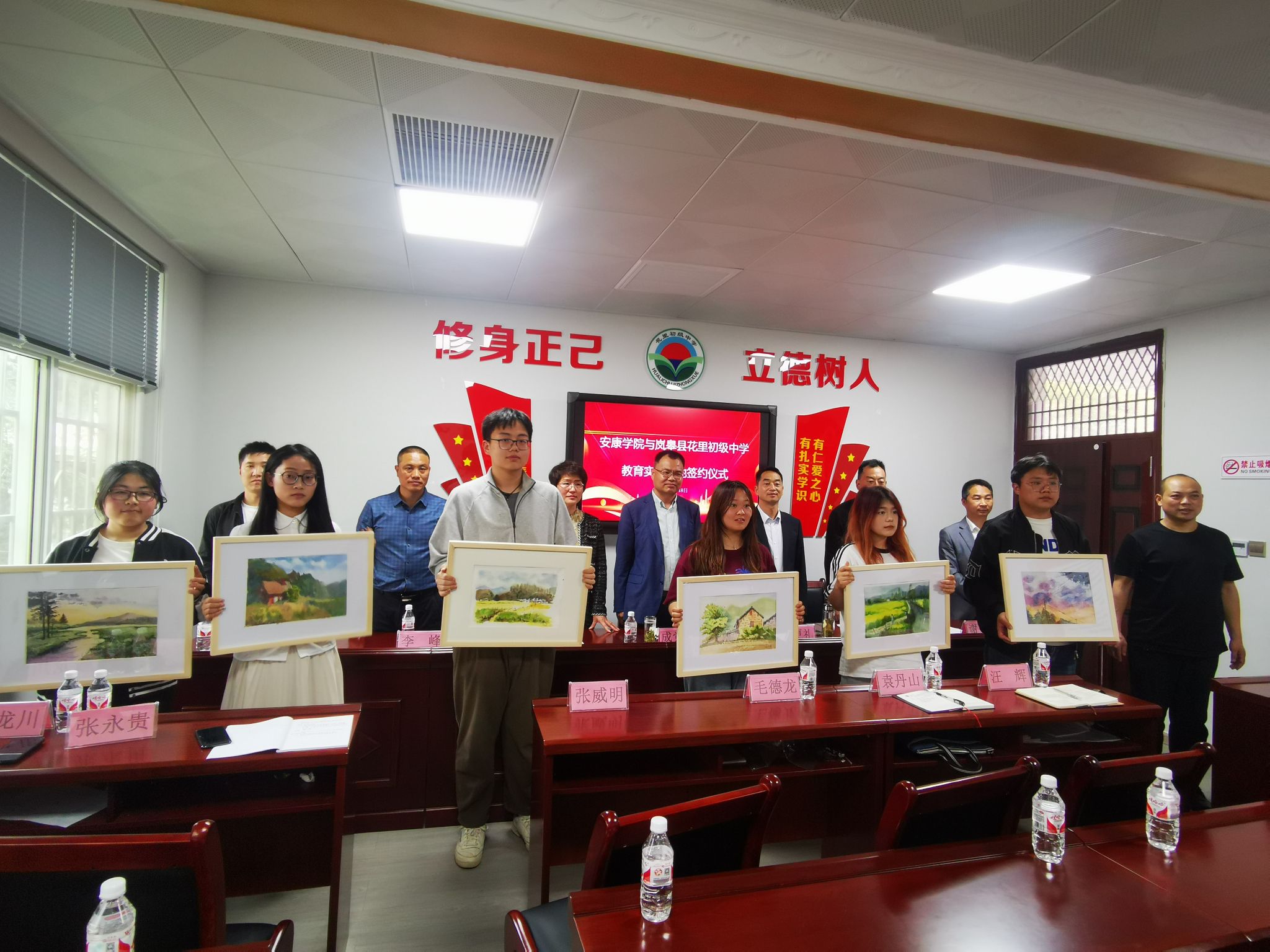 随后,365英国上市官方网站与岚皋县花里初级中学举行了美育实践基地签约仪式,365英国上市官方网站经理成党伟和岚皋县花里初级中学董事长狄邦银代表双方签约,岚皋县教育体育科技局教育衔接办主任丁更礼见证签约,活动由花里中学政教主任谢战主持。双方就共同促进美育工作签订了美育实践基地共建协议。活动中,365英国上市官方网站12位同学把第一批12幅美术写生作品捐赠给花里初级中学作为美育教学资源。