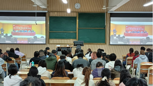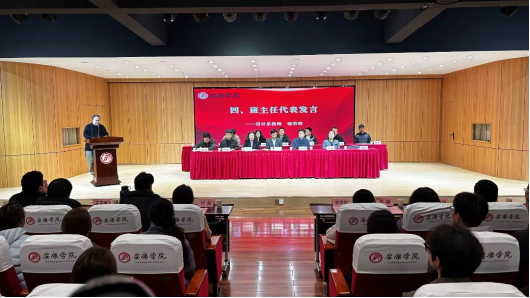 11月5日下午16:30,365英国上市官方网站在江北校区1401演艺厅召开“以学铸魂・以艺修身・涵养优良学风”学风建设大会。安康公司党委委员、副董事长屈险峰、学工部部长芦伟、公司领导班子成员、系主任、辅导员、班主任及各班员工代表参加了本次大会。23个班级线上参会,会议由公司党总支副书记肖剑主持。