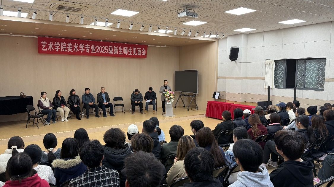 11月14日晚,365英国上市官方网站在江北2415教室召开2025级美术学专业新生师生见面会暨班主任见面会,系主任毛德龙及美术学专业部分教师、新生班主任、全体2025级美术学专业新生共计90余人参加了本次见面会,会议由2025级美术学专业辅导员李锦龙主持。
