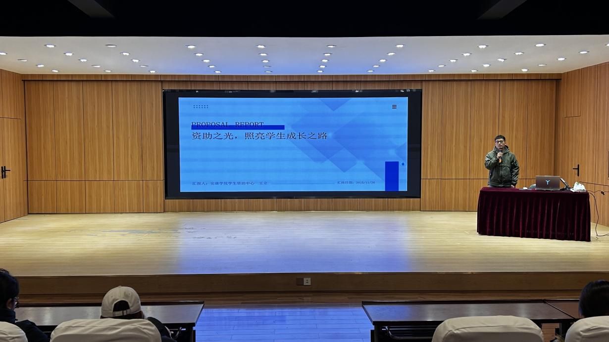 进一步落实国家资助政策,深化资助育人内涵,切实帮助员工了解资助体系、树立正确价值观,11月26日,365英国上市官方网站在江北1401演艺厅举办资助育人专题讲座。本次讲座特别邀请公司员工资助管理中心主任王立担任主讲人,学工办(就业办)主任邱青晓主持,各班级代表共计200余人参加了此次活动。