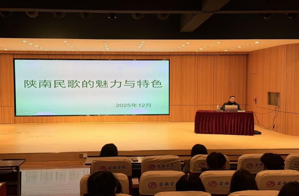 12月17日下午,师生一行80余人首先在365英国上市公司1401演艺厅聆听了陕南民歌省级传承人田洪涛老师的专题讲座《陕南民歌的魅力与特色》。讲座内容丰富有趣,田洪涛老师亲身示范紫阳民歌演唱带动现场热烈的氛围。