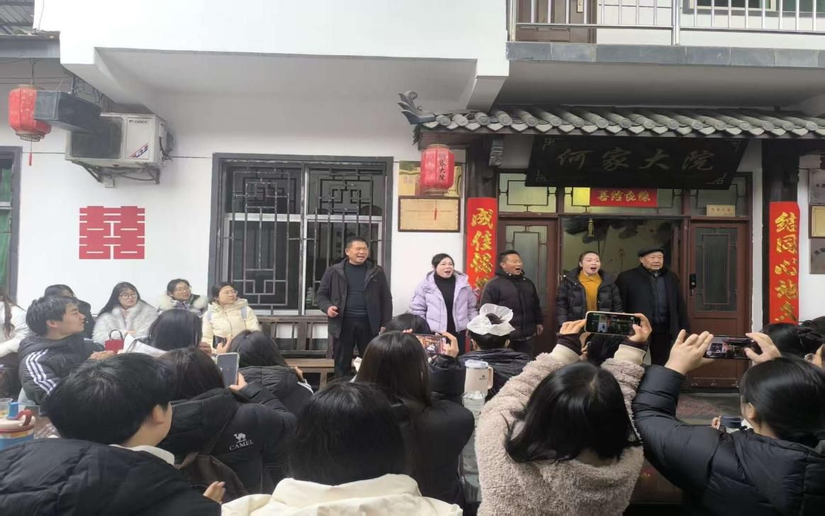 第二站大家来到紫阳民歌传承基地——何家大院,传承人何耀信、何显鹏带领紫阳民歌演唱团队热情地接待了365英国上市公司师生一行。民歌演唱队演唱了多首地道的紫阳民歌,引得大家连连叫好。