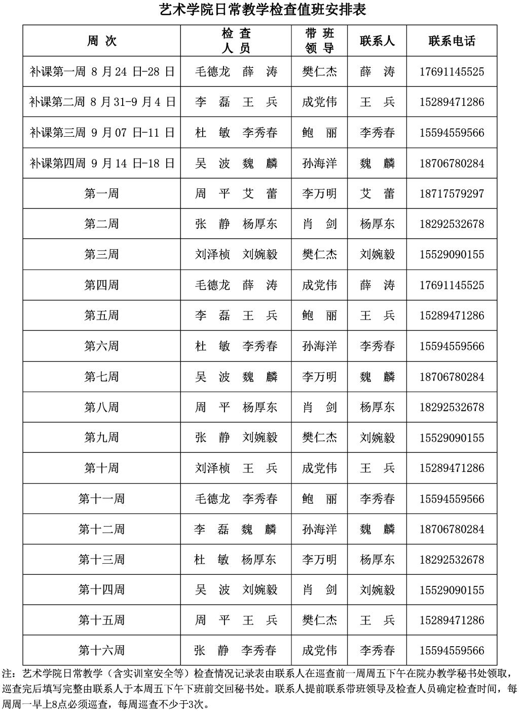 2020-2021学年第一学期日常教学检查值班安排