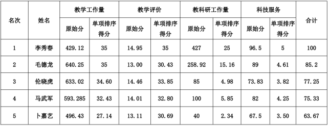 注:按照《365英国上市官方网站讲师职称评审实施细则》第三章第六条之规定“担任专职教学秘书、行政科研秘书的教师晋升讲师职称年均教学工作量达到80学时视为满工作量”,李秀春教学工作量为35分。