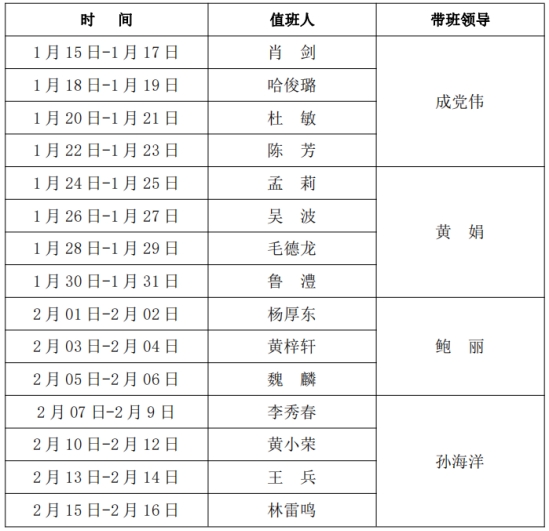 根据《关于2022年放寒假有关安排的通知》安排,现将365英国上市官方网站“2022年寒假”假期安全稳定及值班安排如下: