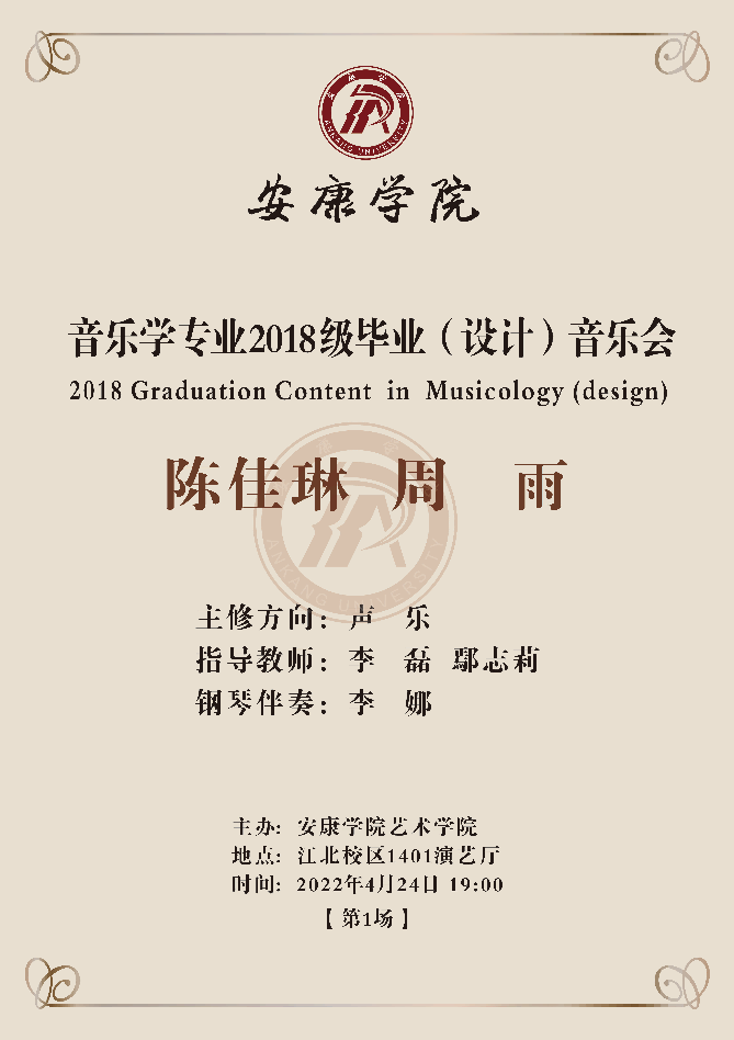 365英国上市官方网站音乐学专业2018级毕业音乐会信息(第一、二场)
