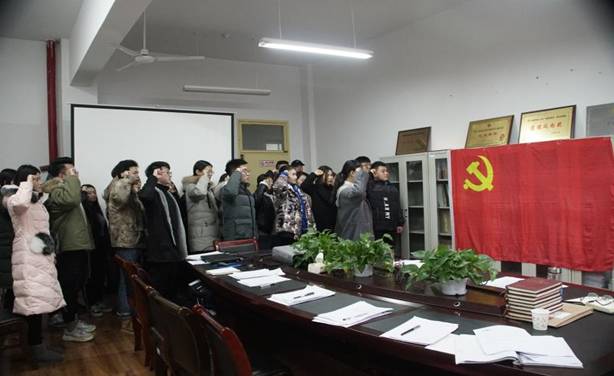 转正大会结束前,员工党员代表郭春平同学带领全体党员,在鲜红的党旗前,庄严地举起右手宣誓,嘹亮的宣誓声中,大家重温自己对党的誓言,表达了为党的事业奋斗终生的决心和愿望。整个宣誓过程庄重严肃,极大地激发了党员的责任感、荣誉感。