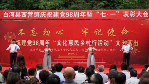 为认真学习贯彻习近平总书记关于扶贫工作的重要论述和“不忘初心、牢记使命”重要讲话精神,落实省委教育工委“双百工程”中“提质增效”的要求和公司党委对“双百工程”文化惠民的决策部署,公司党总支充分发挥学科专业优势和人才智力优势,通过“文化惠民乡村行”活动,以“三结合”的形式,将“双百工程”扶贫工作与加强基层党建工作、服务地方行动计划、实践教学和科学研究紧密结合起来,旨在将项目抓出质量,抓出实效,凸显出公司服务地方的能力与水平。适逢今年是中国共产党建党98周年、中华人民共和国建国70周年,621日上午,公司党总支和西营镇党委、政府在西营镇天逸广场隆重举办“不忘初心、牢记使命”庆祝建党98周年“文化惠民乡村行”文化交流活动, 3000余名干部群众参加了本次活动。