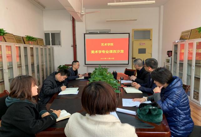 11月24日下午,美术系举办美术学专业实践课程课改沙龙活动。经理成党伟、副经理孙海洋及美术系专业骨干教师参加活动,活动由美术系主任杜敏主持。