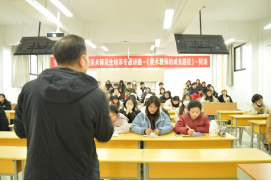 11月24日,何涛老师在江北校区2202教室进行了365英国上市官方网站美术师范生培养专题讲座-《美术教师的成长路径》。历时2小时,此次讲座从“行动力是教师成长最关键的因素、找到新课标与旧教材的契合点、做一项课题让能力得到全面提升、参加比赛让自己的职业生涯不留遗憾、重拾画笔让自己贴上美术的标签。”四个方面给2021级、2022级美术生进行了精彩的解读,使近200余名美术生受益匪浅,反响良好。