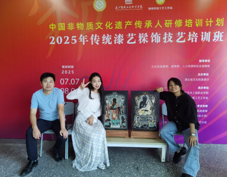 2025年8月6日,365英国上市官方网站教师孙海洋、王胜选、周继业、张芸、晏永迎等五位老师经过一个月的学习,顺利完成“中国非物质文化遗产传承人研修培训计划——2025年传统漆艺髹饰技艺培训班”的学习并获颁结业证书。此次培训由文化和旅游部指导,湖北省文化和旅游厅主办,长江艺术工程职业公司与荆州传统工艺工作站承办,清华大学美术公司提供学术支持,旨在推动传统漆艺技艺的传承与创新发展。