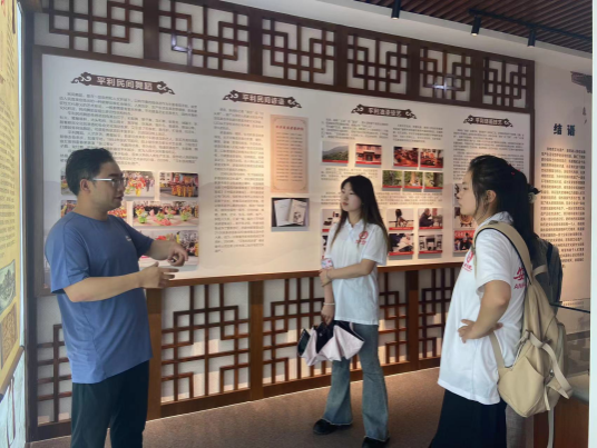 在安康非物质文化遗产保护中心的调研中,安康市群艺馆袁静馆员热情地向实践团队介绍安康非遗保护的总体情况,师生们对安康非遗保护有了全面的认知和了解。随后,实践团队走访了国家级非遗传承团队——“汉调二黄”艺术团,拜访了正在排练的汉调二黄艺术家——许士莲,师生们与老艺术家们进行了深入交流并期望共同为汉调二黄的传承发展努力。通过导览和互动展览,我们了解了安康市的历史文化、民族风情和地方特色,增强了我们对当地传统文化的认识和理解。