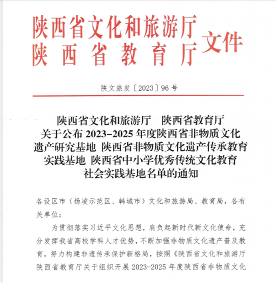 12月22日,陕西省文化和旅游厅、陕西省教育厅公布了2023-2025年度陕西省非物质文化遗产研究基地名单。公司申报的“汉调二黄非遗传承保护研究基地”成功入选。